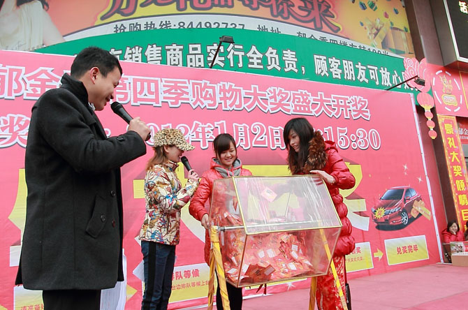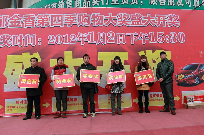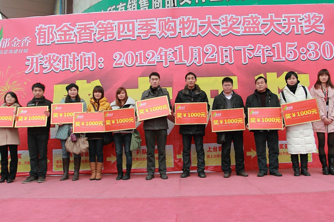 郁金香2012龙年第一季大型购物豪礼活动于2012年7月1日晚20:00现场开奖。凡活动期间在郁金香精品装饰建材城购物满1000元,即可获得汽车黄金大奖抽奖卷一张,累计有效,多买多送。